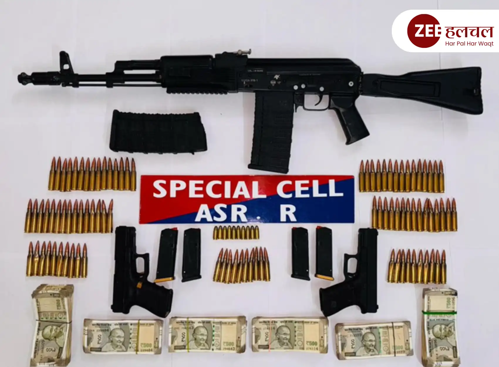 #WATCH | Punjab | SSP Amritsar Rural Maninder Singh said, “… Amritsar Rural Police, in collaboration with central agencies, conducted an operation and arrested five individuals. From them, one AK series assault rifle, 90 live rounds, two magazines, two Glock pistols, four Glock… pic.twitter.com/22tu0X1HSM